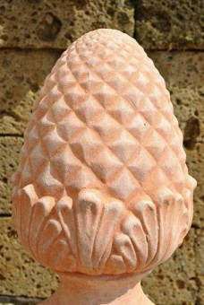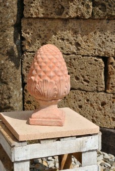 Es handelt sich um einen handgefertigten Pinienzapfen aus Terracotta.