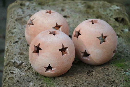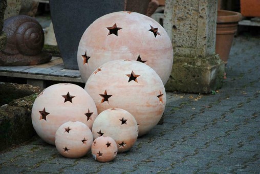 Tolle Deko für Garten und Terrasse bieten diese frostfesten Kugeln aus Terracotta,white-wash Technik,