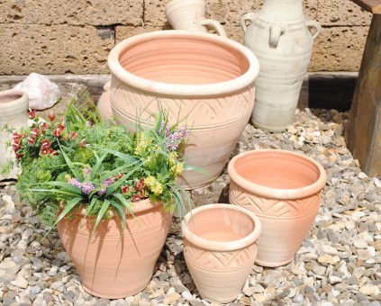 Pflanzkübel aus hochgebranntem TerracottaRustikales,hartes Material.in sandfarbenem,hellen Terracottahandgefertigtes Material,verschiedene Farbgebungen möglich,siehe Bilder