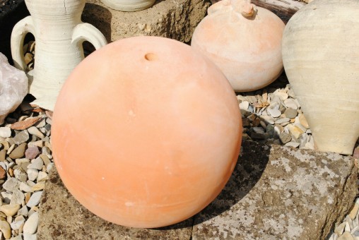 Tolle Deko für Garten und Terrasse bieten diese Kugeln aus Terracotta,white-wash Technik,