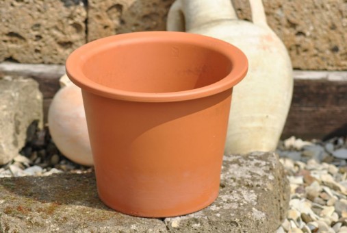 hübsche ,schlichte Kräutertöpfe aus rotem Terracotta.