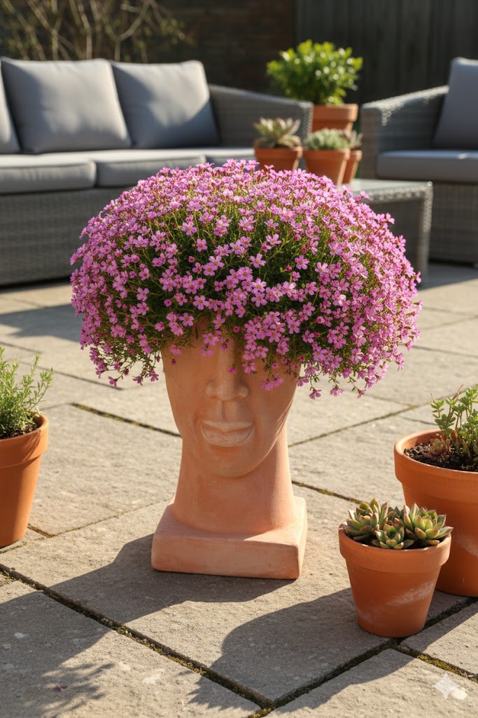 Der Kopf ist bepflanzbar,oben offen,mit einem Ablaufloch für Giesswasser.