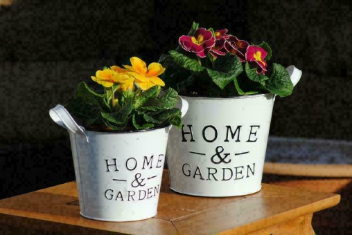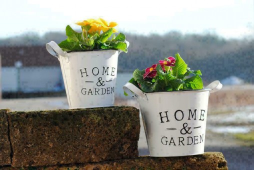 2er Set Metalltöpfe in weiß mit Beschriftung