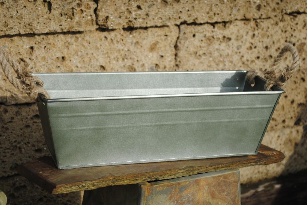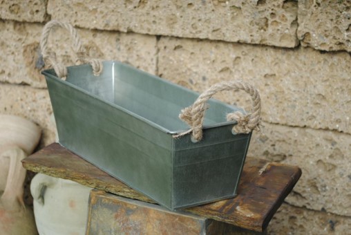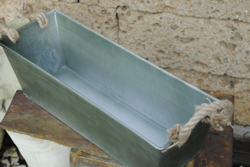 Wunderschöne verzinkte Metallpflanzkästen in tollem antik-grün mit geflochtenen Kordelgriffen Diese Wannen eignen sich wunderbar als Pflanzgefäß,auch für Feuchtgewächse. Länge 44cm,Höhe 13cm,Breite 14,5cm