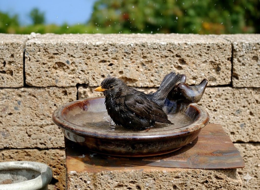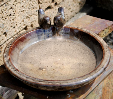 Vogeltränke aus sehr stabilem Steingut.