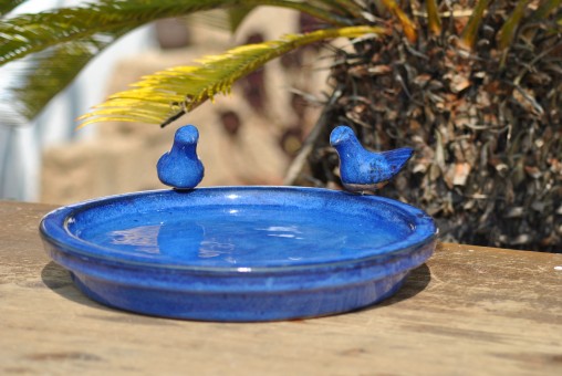 Vogeltränke mit zwei kleinen Vögelchen,rund,30cm blau